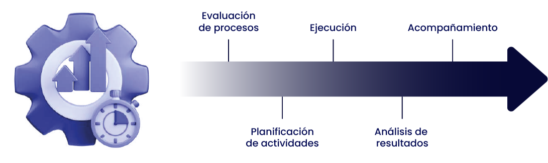 Acompañamos a las empresas en un proceso de transformación optimizando su desempeño a través de cinco etapas: